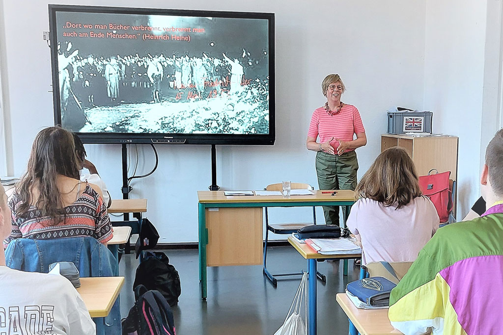 »Bücher, das wissen wir jetzt, kann man nicht verbrennen« – das berühmte Zitat von Erich Kästner, der am 10. Mai 1933 auf dem Berliner Opernplatz Zeuge wurde, wie seine Werke in Flammen auf¬gingen, stand als Motto über dem stadtweiten Literaturfestival »Hamburg liest verbrannte Bücher«. Und die Abteilung Schule und Hochschule war aktiv in unseren Schulen mit dabei – in Hamm, Blankenese, Langenhorn, Billstedt, Neugraben und Borgfelde.