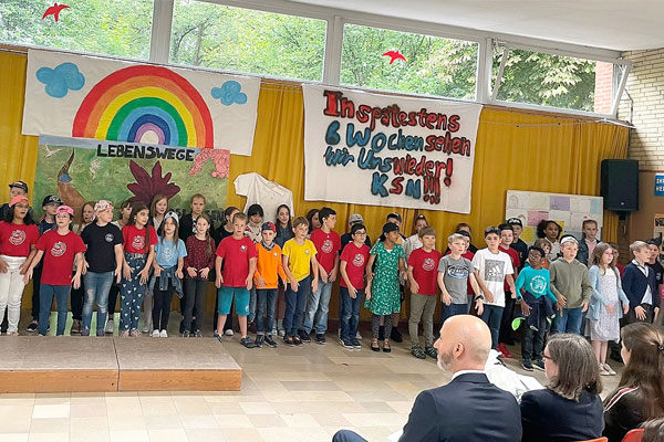 Bewegender Abschied vom langjährigen Schulleiter der Katholischen Schule Neugraben, Wolfgang Pickartz, am vergangenen Freitag in Neugraben: Im Mittelpunkt des Vormittags stand ein Gottesdienst der gesamten Schulgemeinschaft auf dem Schulgelände.
