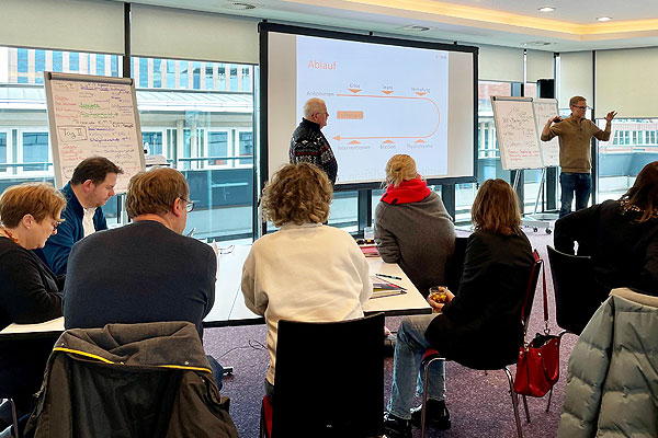Als Referenten führten Stephan Münch und Peter Rudolf von Sinus – schulische Krisenintervention e.V. durch die Veranstaltung. Organisiert und begleitet wurde die Fortbildung von Marion Karg, Leiterin Referat 2 Schulaufsicht und schulfachliche Beratung in der Abteilung Schule und Hochschule im Erzbistum Hamburg, die selbst im Intervenieren von Krisen ausgebildet ist.