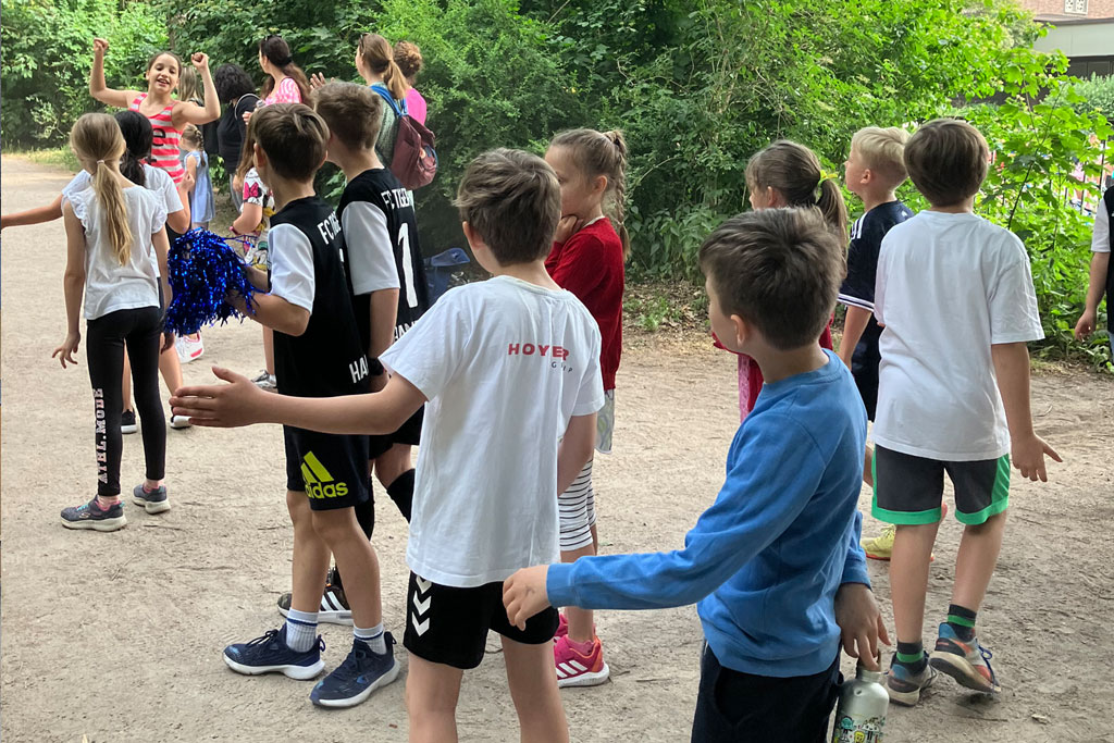 Was für ein Einsatz! Die Grundschüler_innen der Katholischen Sophienschule haben sich bei sommerlichen Temperaturen voll für ihren Schulneubau reingehängt – und insgesamt mehr als 2500 gesponserte Parkrunden erlaufen.