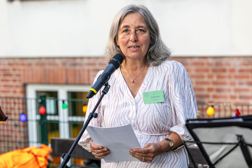 Am Abend versammelten sich schließlich mehr als 500 Gäste bei Wein, Bier, Grill- und Fingerfood sowie Live-Musik, um der 75-jährigen Geschichte der Grundschule an der Mörikestraße zu gedenken. „Es tut richtig gut, in dieser riesigen Gemeinschaft – mit dem Kollegium, den Eltern und ganz vielen Ehemaligen und Freunden der Schule – dieses große Jubiläum zu begehen“, erklärte Schulleiterin Eike Eichmann. Selbst aus München hatten sich ehemalige Schüler_innen auf den Weg gemacht, um ihrer alten Grundschule einen Besuch abzustatten und bis weit in die Nacht zu feiern.