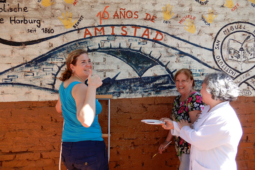 Überhäuft mit Geschenken und Zeichen der Freundschaft für unsere Schule und im Herzen unendlich reicher aufgrund der vielen liebevollen, fröhlichen und dankbaren Begegnungen, fuhren wir wieder nach Hause. Jedoch nicht, ohne die von meinen Schülerinnen und Schülern und mir 2017 zum zehnjährigen Jubiläum der Schulpartnerschaft gestaltete Wand zu aktualisieren: 16 años de amistad.“