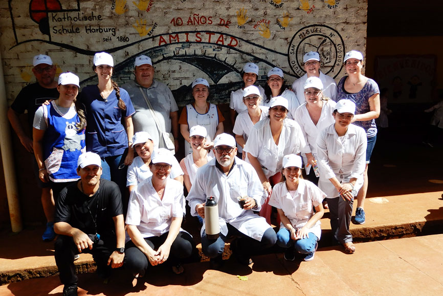 Endlich war es so weit und der ursprünglich für Sommer 2020 geplante Besuch der Partnerschule der Katholischen Schule Harburg konnte – nach den Corona-Einschränkungen der letzten Jahre – Wirklichkeit werden. So besuchten Schulleiterin Katrin Hoppmann, Jörg Nintemann und Harburgs Pfarrer Stefan Langer in den Märzferien die Schule San Miguel im Partnerbistum Iguazú.