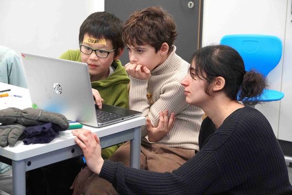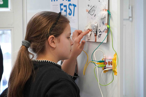 Den Auftakt der Kids Academy bildete ein Workshop der Jungen Tüftler_innen, einem gemeinnützigen Bildungspartner mit bundesweiter Expertise in innovativen, partizipativen Lernformaten. Für die Viertklässler drehte sich alles um Stromkreise, Nachhaltigkeit und digitale Bildung. Spielerisch und projektbasiert arbeiteten die Kinder an der Schnittstelle von analogem Basteln und digitaler Technik. Sie schlossen eigenständig Stromkreise, malten und gestalteten Plakate, recherchierten zum Thema „Müll in unseren Meeren“ und setzten ihre Ergebnisse schließlich kreativ um. Mithilfe eines Mikro-Controllers (Makey Makey) und der visuellen Programmiersprache Scratch verwandelten die Jungen und Mädchen ihre selbst gestalteten Plakate in interaktive, „sprechende Poster“, die digitale Audiodateien abspielen konnten. So erfuhren sie ganz praktisch, wie Programmierung, Elektronik und kreative Gestaltung zusammenspielen. Die Referentinnen Lea und Athina, führten mit viel Motivation und Fachwissen durch das partizipative Lernformat. Das Ziel: Bildung für nachhaltige Entwicklung (BNE) und Bildung in der digitalen Welt miteinander zu verbinden – niedrigschwellig, spielerisch und lebensnah.