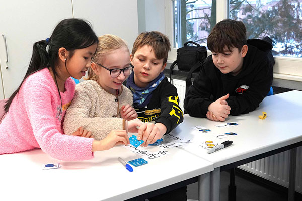 Innerhalb kurzer Zeit entstand so ein temporärer Makerspace – ein Raum, der zum Experimentieren, Ausprobieren und gemeinsamen Problemlösen einlud. Die Begeisterung der Kinder war dabei deutlich spürbar. „Wollt ihr eine Pause?“, fragte Lea – doch die Viertklässler lehnten einstimmig ab: „Nein!“. Bei einem zweiten Workshop der Kids Academy werden die Siebtklässler mit VR-Brillen in virtuelle 3D-Welten abtauchen. Auch da stehen Nachhaltigkeit, Zukunftsfragen und kreatives Denken im Mittelpunkt. „Auch zukünftig wollen wir mit der Kids Academy in projektbasierten Formaten technische, gesellschaftliche und ökologische Fragestellungen miteinander verknüpfen – und altersgerecht aufbereiten“, blickt Schulleiter Stüper in die Zukunft. So setze die katholische Grund- und Stadtteilschule ein starkes Zeichen für innovative Bildung, die junge Menschen befähigt, ihre Umwelt aktiv, kreativ und verantwortungsvoll mitzugestalten, so Stüper.